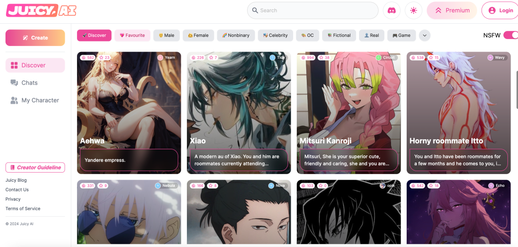 The platform predominantly focuses on anime/game character content, but the creation of an NSFW character remains a choice. If users opt to design a character for NSFW interactions, they are advised to enable the NSFW setting to ensure the content is appropriately classified.