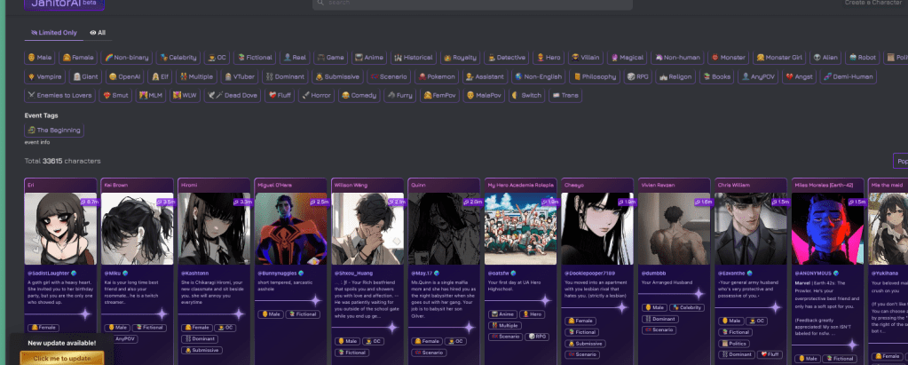 - Gamme Étendue de Personnages : Avec des milliers de personnages, à la fois réalistes et de style anime, les utilisateurs peuvent toujours trouver une correspondance qui résonne avec leurs préférences, garantissant que chaque interaction soit fraîche et engageante.