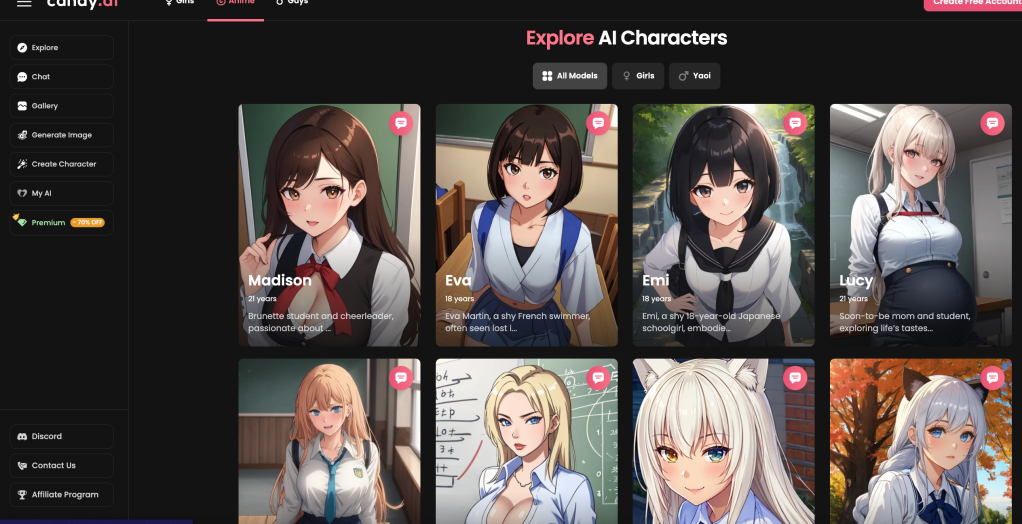 Candy AI is an application that most aptly illustrates how to interact with the client by focusing on the theme of Anime.